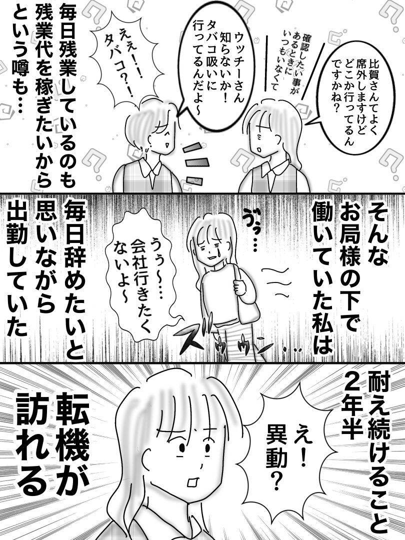 お局さまにリベンジを!前編 2026.04.10 エッセイ漫画 お局様, エッセイ漫画, リベンジ, 先輩, 新卒, 新社会人 広告 広告 お局様ってなんであんなに感情の起伏激しいの?? 12 同じカテゴリの記事 お局さまにリベンジを!後編 お局さまにリベンジを!前編 波乱の人生 接客用語が伝わらないお客様 独身女のリアルな休日 彼女思いのお客様? 迫りくる更年期 婚活戦記34 引っ越しあるある 年末の引っ越し 勝手に親近感 人は見た目によらない 奇跡到来 友達からの勧誘断れますか?最終話 友達からの勧誘断れますか?3 友達からの勧誘断れますか?2 友達からの勧誘断れますか?1 ヤツとの戦い コンプラ違反 困ったお客様 謎の荷物 初めて通報した話 アレルギーの話 困ったお客様 アラフォーの日常 困ったお客様 困ったお客様 仕事でやらかした話 後編 仕事でやらかした話 前編 42歳独身無職になりました8 42歳独身無職になりました7 42歳独身無職になりました6 42歳独身無職になりました5 42歳独身無職になりました4 42歳独身無職になりました3 42歳独身無職になりました2 42歳独身無職になりました1 子宮内膜症で入院した時の話10 子宮内膜症で入院した時の話9 子宮内膜症で入院した時の話8 子宮内膜症で入院した時の話7 子宮内膜症で入院した時の話6 子宮内膜症で入院した時の話5 子宮内膜症で入院した時の話4 子宮内膜症で入院した時の話3 子宮内膜症で入院した時の話2 子宮内膜症で入院した時の話1 アソコノカユミ③ アソコノカユミ② アソコノカユミ① 無職の遊び方 生理前ガチャ あー!夏休み なぜか隣に座ってくる人 推しメンさんと私④ 推しメンさんと私③ 推しメンさんと私② 推しメンさんと私① 21年目の真実 出会いは突然に 10kg痩せたら女になれました7 10kg痩せたら女になれました6 おヘソに異変が起きた話 後編 おヘソに異変が起きた話 前編 10kg痩せたら女になれました4 10kg痩せたら女になれました3 アラフォー独女2人のしょーもない話 10kg痩せたら女になれました2 10kg痩せたら女になれました1 困ったお客様 BBAが久しぶりにときめいた日 初ブログ 前の記事 婚活戦記40 2026.04.07 次の記事 お局さまにリベンジを!後編 2026.04.12 アプリなら通知ですぐ読める! NAPBIZブログ